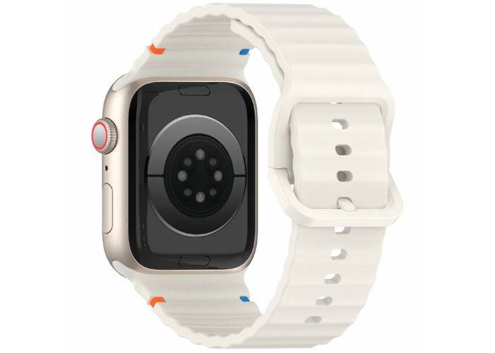 Skønt urrem til dit Apple Watch, fremstillet i blødt og behageligt silikone materiale der er holdbar og kan bruges til alle formål. Justerbar længde sikres via adskillige huller.