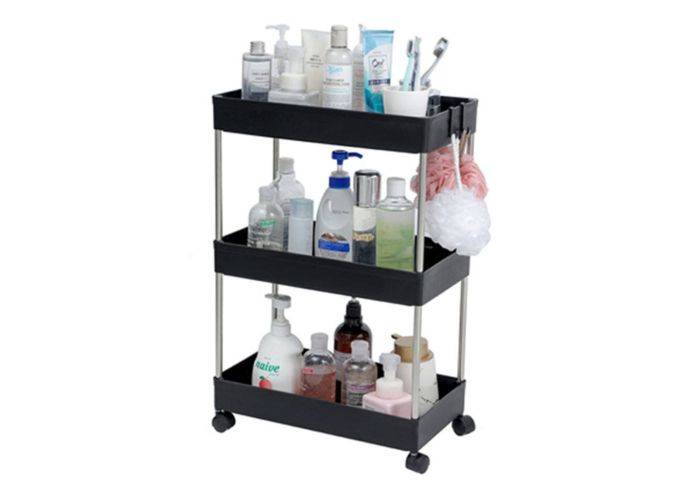 Badeværelsesreol med 3 hylder og med Hjul str. 40x22x60cm - Sort