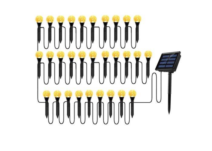 1 x Ball Fairy Udendørs LED Lyskæde på spyd med SOLCELLER - 30 LED lys - Gul