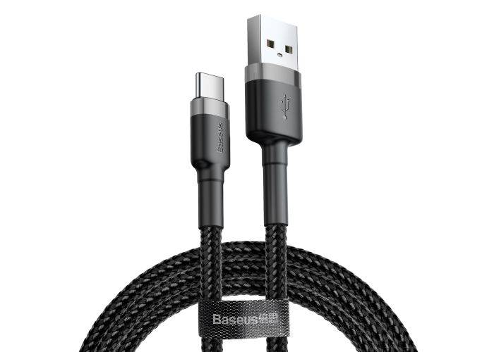 1 x BASEUS Cafule USB-C USB oplader kabel 2A - 2M - Grå/Sort