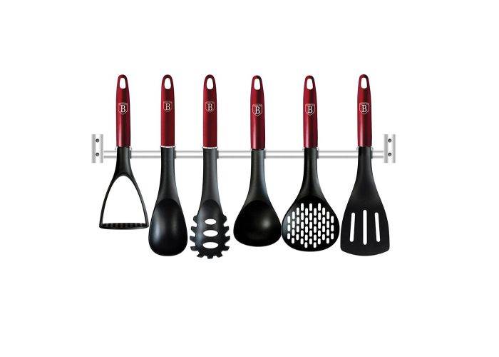 Dette smukke køkkenredskabssæt er en del af Berlinger Haus' Burgundy Collection og vil være en fantastisk tilføjelse til dit køkken. Værktøjerne vil være det perfekte udstyr til alle dine madlavnings- og stegebehov. Berlinger Haus-redskaberne er designet til at være praktiske samt forbedre hygiejnen og minimere det rod, der opstår ved at placere redskaber på arbejdsfladerne. Hvert stykke har integreret værktøjsstøtte, der holder hovedet på værktøjet, og dermed er hævet fra køkkenoverfladen, når det lægges ned under madlavningen.
