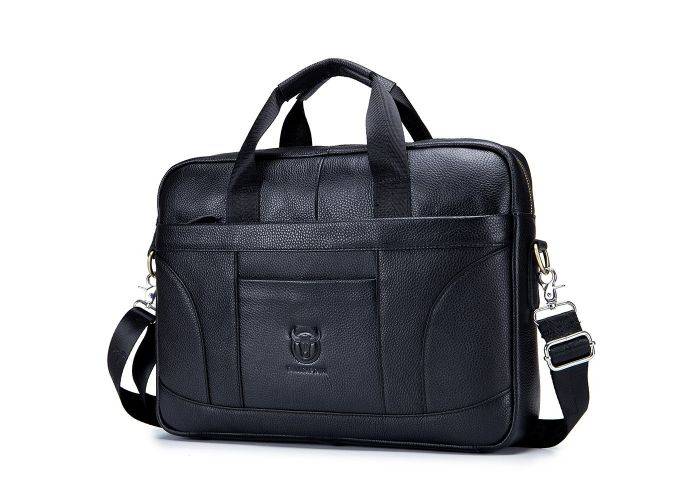 1 x BULLCAPTAIN skuldertaske i ægte læder 40x29cm - Sort