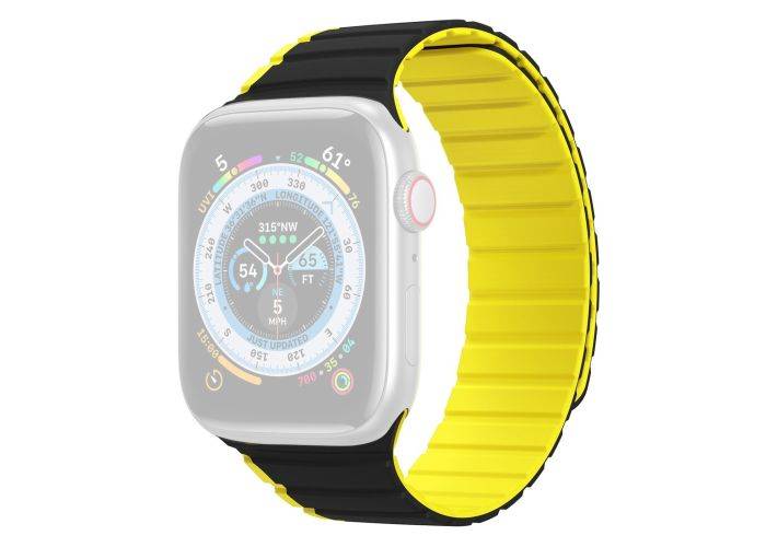 Dux Ducis LD Series - Apple Watch 9/8/7/6/5/4/3/2/1/SE/Ultra/Ultra 2 - 49/45/44/42mm - Magnetisk silikone urrem - Sort/gul