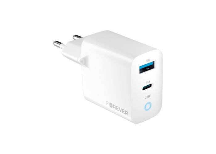 Forever Dual USB HURTIG oplader / adapter 20W - 1 x USB-A 18W / 1 x USB-C