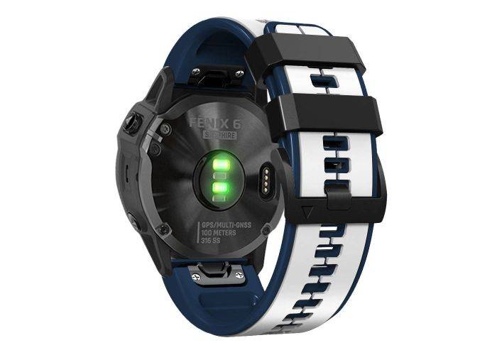 Garmin Fenix 7 / Fenix 7 Solar / 7 Sapphire Solar - Silikone rem 22mm - Hvid/Blå