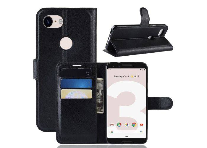 1 x Google Pixel 3A - Læder cover / pung - Sort
