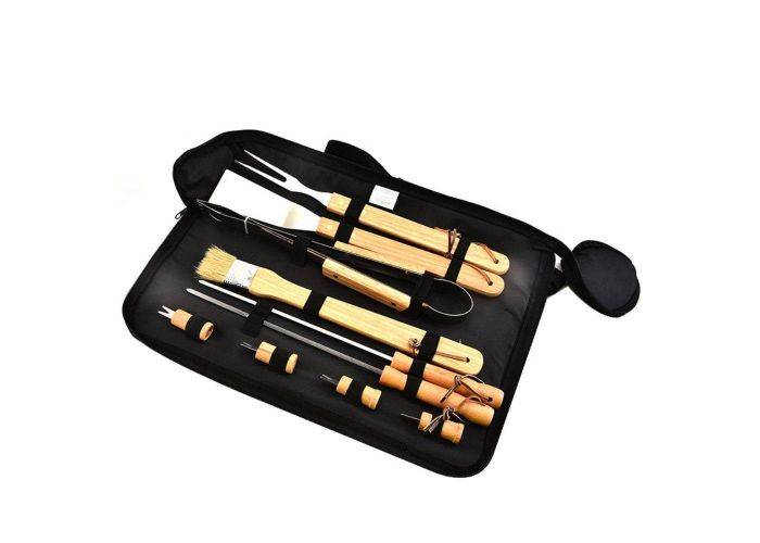 Flot grillsæt med 10 dele som kommer i en smart opbevaringsboks med lynlås og strop for nem bæring. Sættet indeholder de vigtigste dele til en komplet grillaften og er udført i flot rustfrit stål og træ. Med opbevaringsboksen kan du også nemt tage sættet med på camping og til vennerne.