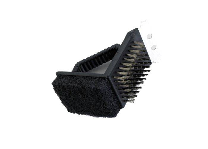 1 x Grillbørste 3-i-1 design med skraber - Til rengøring af Grillen - Sort