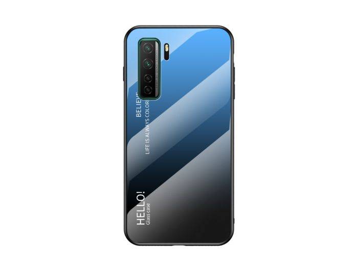 Huawei P40 Lite 5G - GRADIENT Hybrid cover med bagside af hærdet glas - Blå/sort