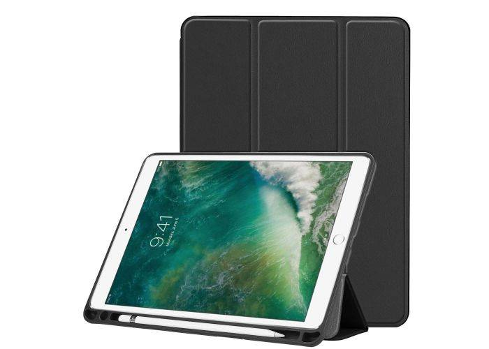 Smart og lækkert cover til din iPad, lavet af kunstlæder. Med Tri-Fold, kan din enhed uden problemer stå på bordet ved egen hjælp og gør alt visuelt visning på din skærm til en drøm. Beskytter effektivt din iPad på begge sider, og materialet er modstandsdygtig mod skidt og snavs, og gør det nemt at rengøre. Der er lavet en praktisk plads til din touch/stylus pen, hvilket er praktisk til den daglige brug og ved præsentationer.
