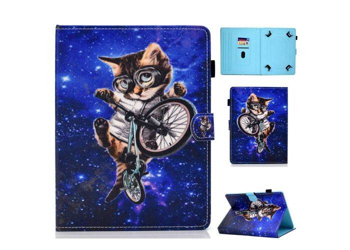 Universal iPad/tablet læder cover 9-10.1" - Med kortholdere - Cyklende kat