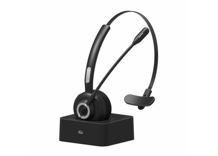 M97 - Trådløst Headset m/oplader dock - NOISE CANCELLING - 17 TIMERS TALETID - Sort
