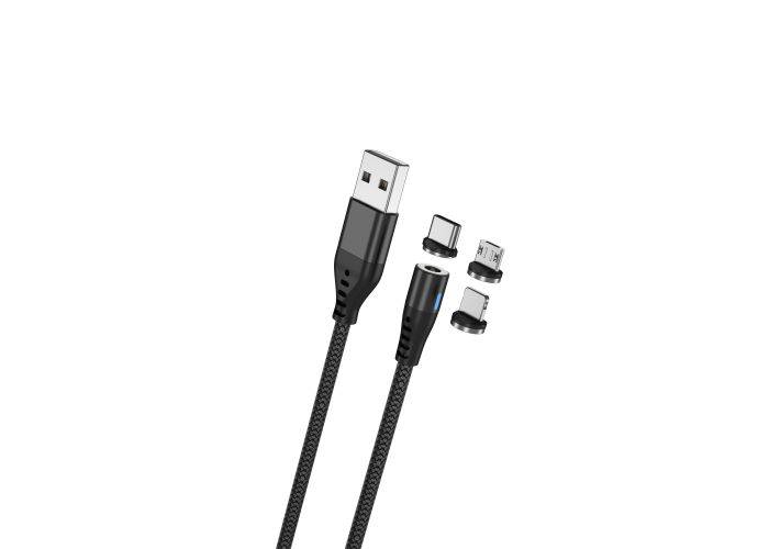 Maxlife 3-i-1 magnetisk opladerkabel - USB-C / Lightning / mikroUSB - 1 m