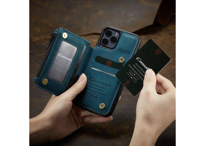 iPhone 12 Pro Max - CASEME læder bagcover - Med kortholdere og lomme med lynlås - Blå