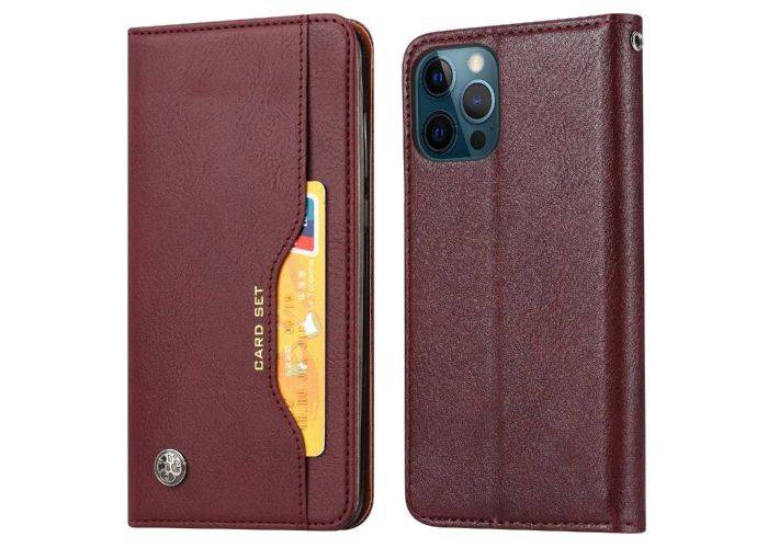 iPhone 13 Pro - Læder cover / pung med udvendig kortholder - Vinrød