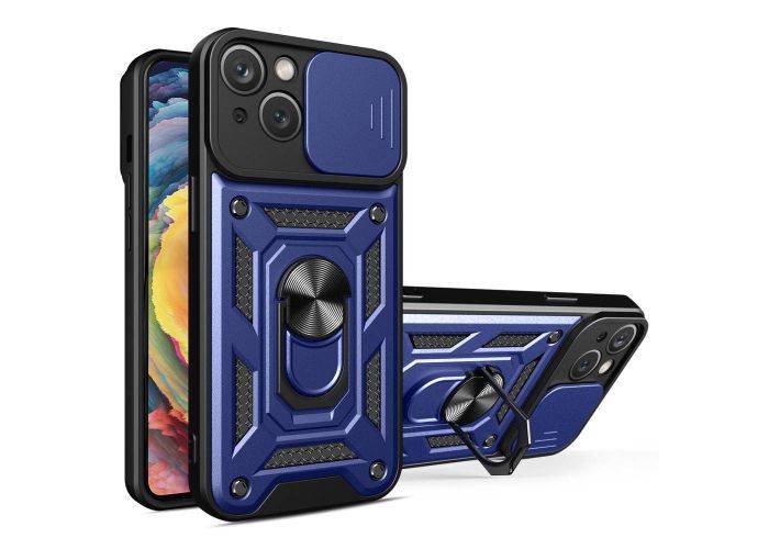 iPhone 14 Max - SLIDE Hybrid cover med Kickstand & Magnetisk plade - Blå