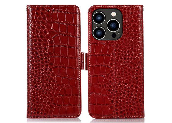 iPhone 14 Pro - Ægte læder cover / pung - med RFID - Rød