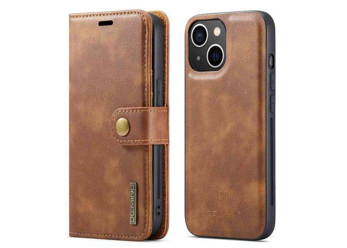 iPhone 14 - DG MING 2-i-1 ægte læder cover - Aftagelig holder - Brun