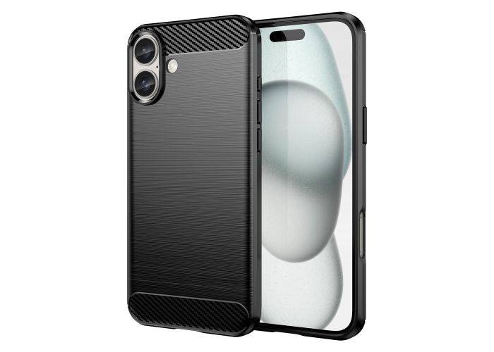 iPhone 16 Plus - Gummi cover - Børstet design - Sort