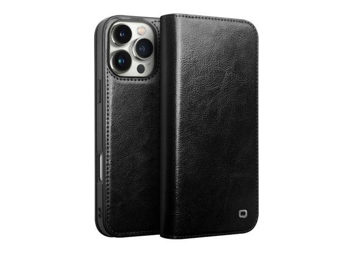 iPhone 16 Pro - QIALINO "Classic" ægte læder cover / pung - Sort