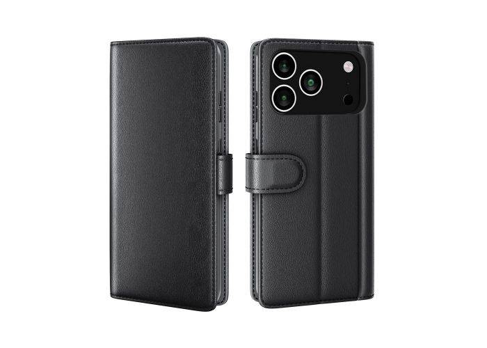 iPhone 17 Pro - Ægte læder cover / pung - Sort