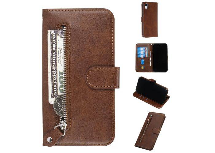 iPhone XR - Læder cover / pung med udvendig lomme - Brun