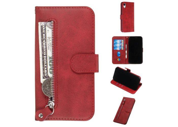 iPhone XR - Læder cover / pung med udvendig lomme - Rød