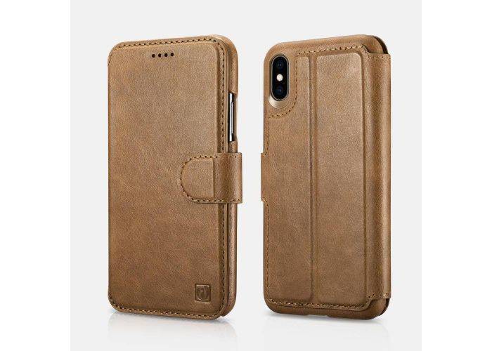1 x iPhone XS Max - ICARER 2-i-1 ægte læder cover / pung - aftageligt - Brun