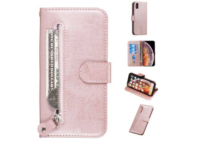 iPhone Xs/X - Læder cover / pung med udvendig lomme - Rosa guld