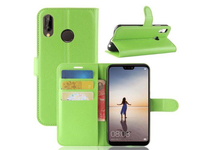 1 x Huawei P20 Lite - Læder cover / pung - Grøn