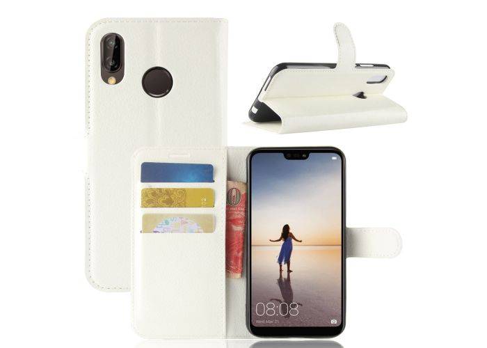 Huawei P20 Lite - Læder cover / pung - Hvid