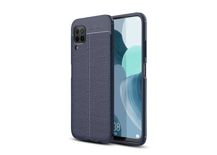 Huawei P40 Lite - Gummi cover i Læder Design - Mørkeblå