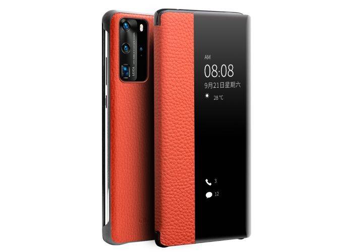 Huawei P40 Pro - QIALINO ægte læder view window cover - Rød