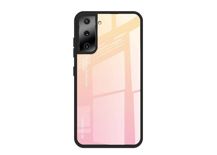 Samsung Galaxy S21 Plus 5G - GRADIENT Hybrid cover med bagside af hærdet glas - Guld/pink