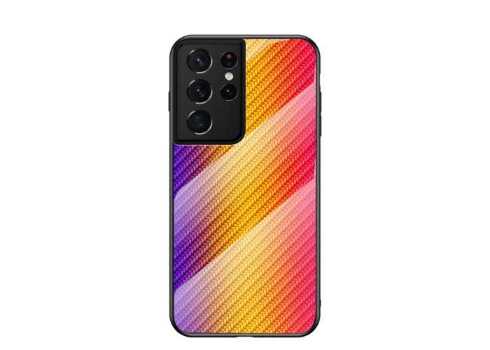 Samsung Galaxy S21 Ultra 5G - Hybrid cover med bagside af hærdet glas - Børstet Design - Orange