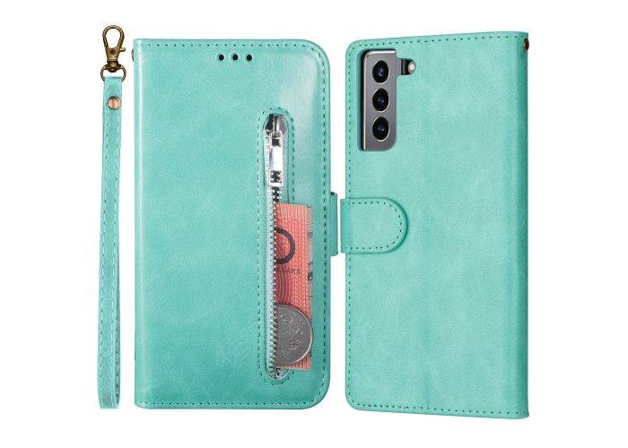 Samsung Galaxy S22 5G - Læder cover / pung - Lomme med lynlås - Grøn