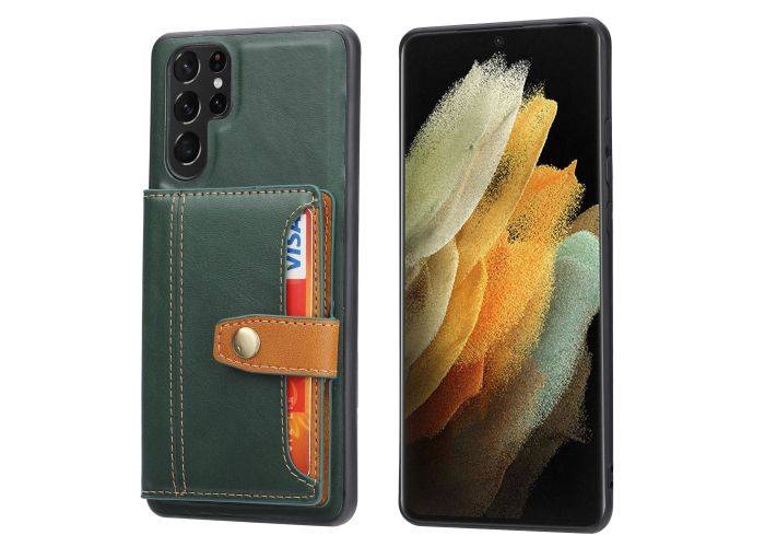Samsung Galaxy S22 Ultra 5G - Læder Hardcover med multi kortholdere - Grøn