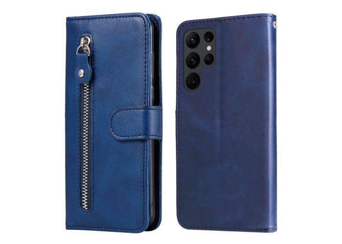Samsung Galaxy S23 Ultra 5G - Læder cover m/ udvendig lomme med lynlås - Blå