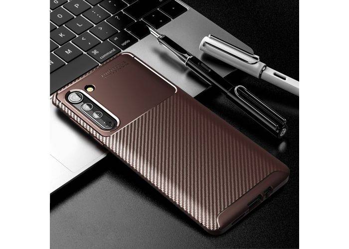 Motorola Edge - Gummi cover i Børstet Design - Brun