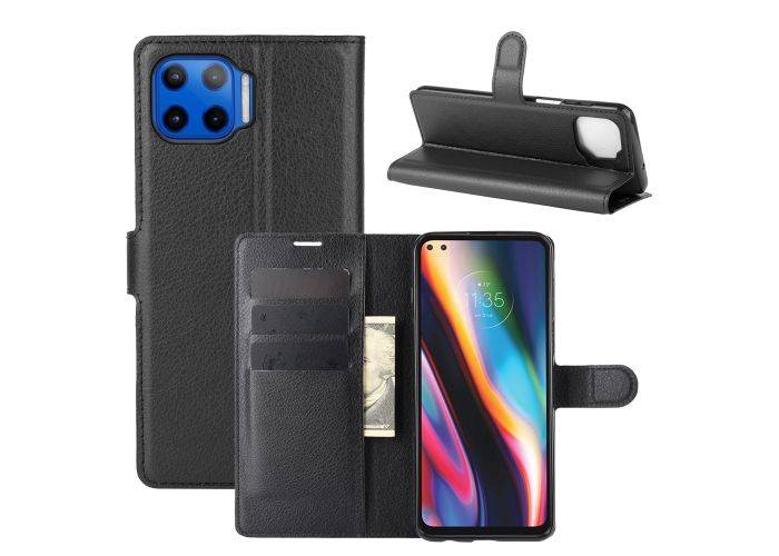 Motorola G 5G Plus - Læder cover / pung - Sort