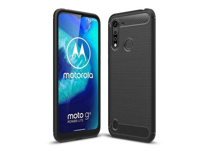 Motorola G8 Power Lite - Gummi cover i Børstet Design - Sort