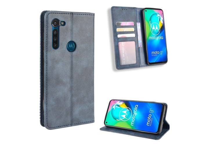 Motorola G8 Power - Vintage læder cover / pung - Blå