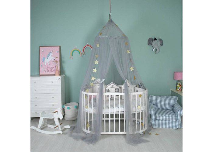 Myggenet - Dome Design til over baby / tremme seng - 300 x 60cm - Grå