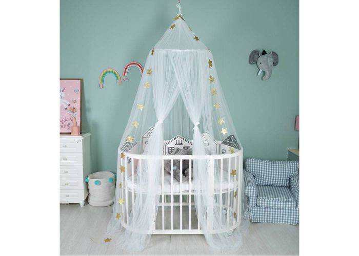 Myggenet - Dome Design til over baby / tremme seng - 300 x 60cm - Hvid