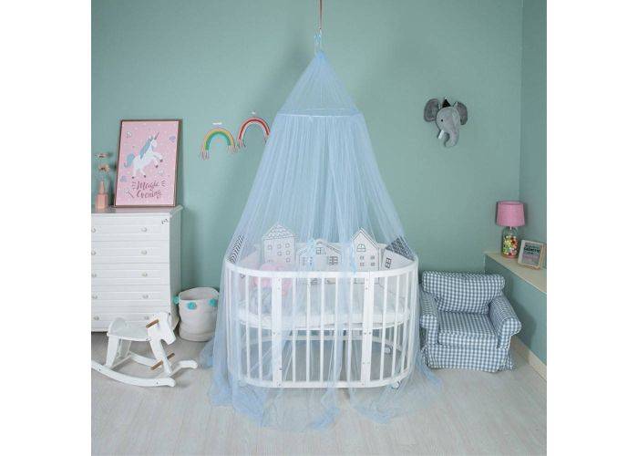 Myggenet - Dome Design til over baby / tremme seng - 300 x 60cm - Lyseblå