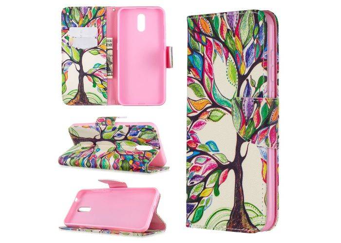 Nokia 2.3 - Læder cover / pung i mønstret design - Farverigt træ