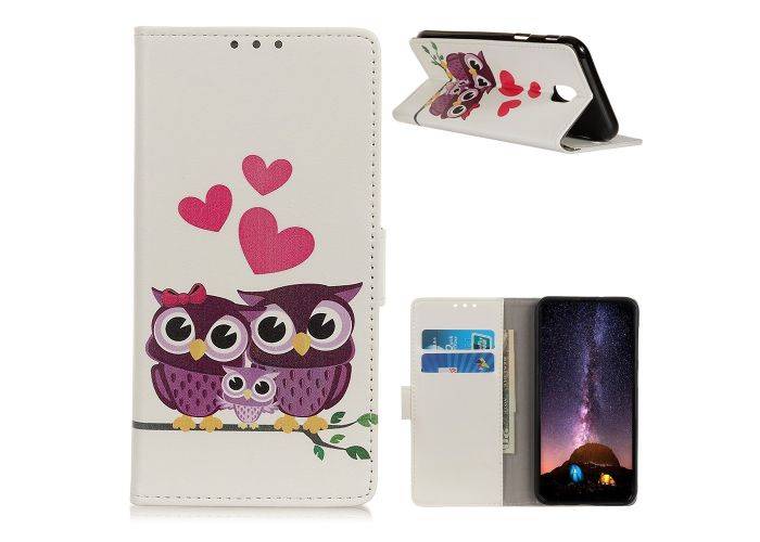 Nokia 2.3 - Mønstret læder cover / pung - Ugler & Hjerter
