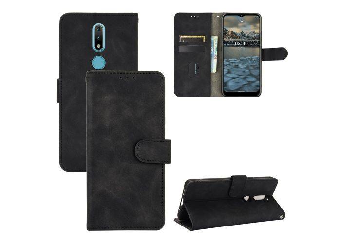 Nokia 2.4 - Classic læder cover / pung - Sort