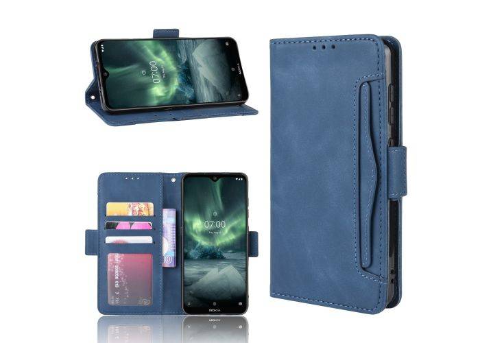 Nokia 7.2/6.2 - Læder cover / pung med smart kortholder - Blå