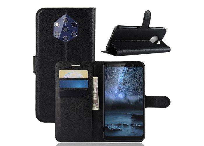 1 x Nokia 9 Pureview - Læder design cover / pung - Sort